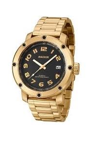 Relógio Magnum MA33639U dourado, com design cheio de estilo e praticidade. Com adornos em pedraria preta.