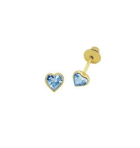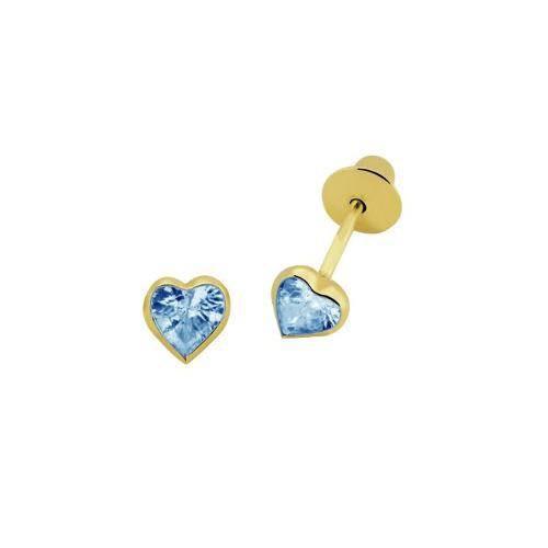 Brinco Infantil Coração 4mm Zircônia Azul Ouro 18K - VJBR037-A