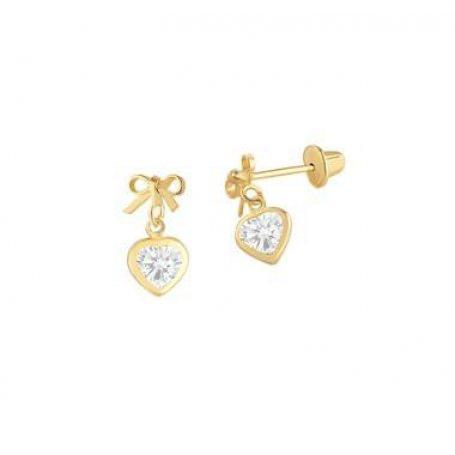 Brinco Infantil Laço Coração Zircônia Branco Ouro 18K - VJBR185-Z